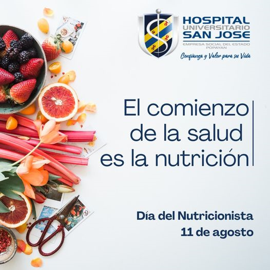 El Hospital Universitario San José de Popayán E.S.E, liderado por el Dr. César Sarria Porras y la familia San José, exaltan la labor de los Nutricionistas, su compromiso, entrega y dedicación, son fundamentales en el bienestar de nuestros pacientes a través de una alimentación adecuada.
